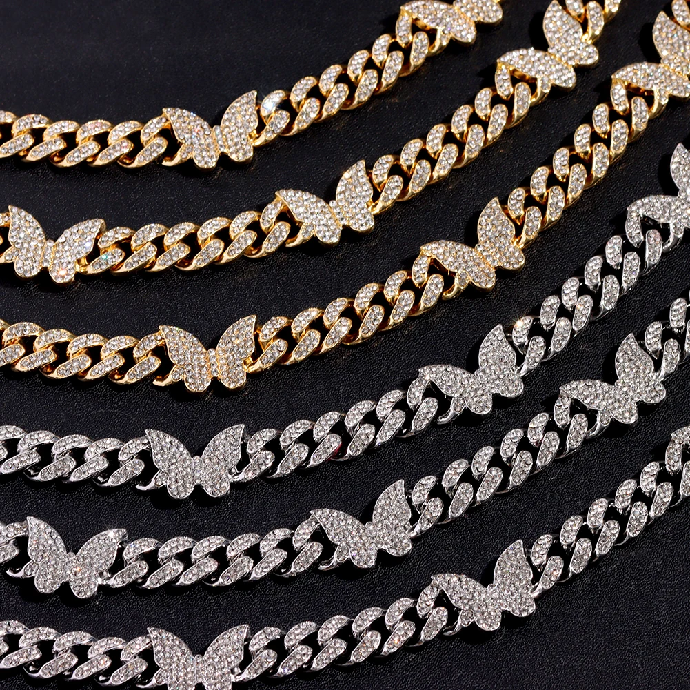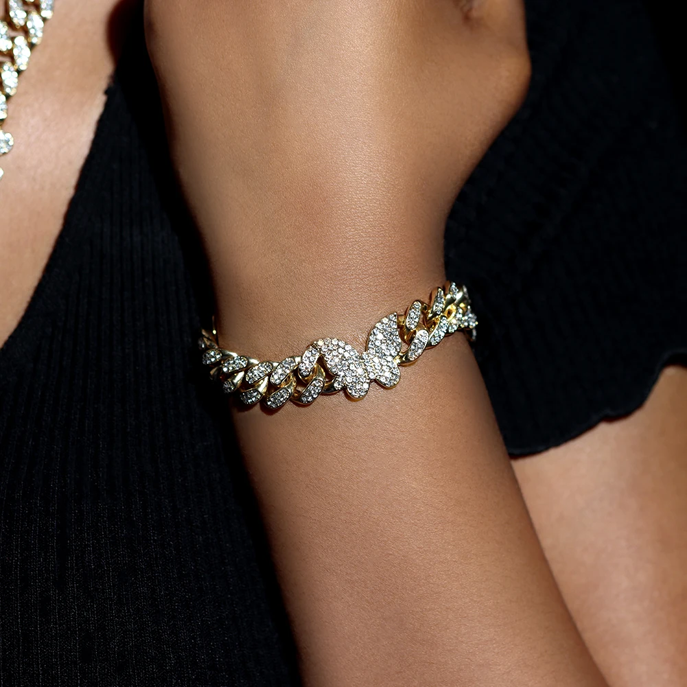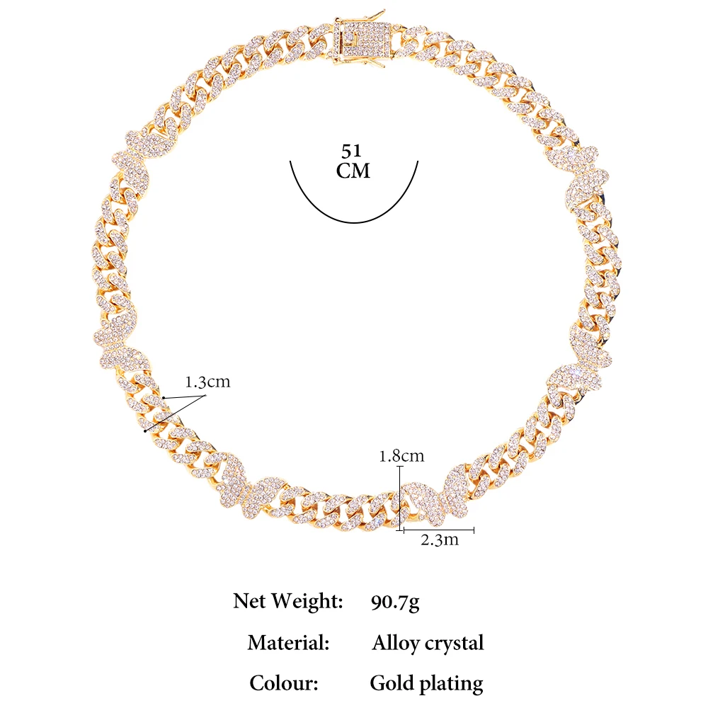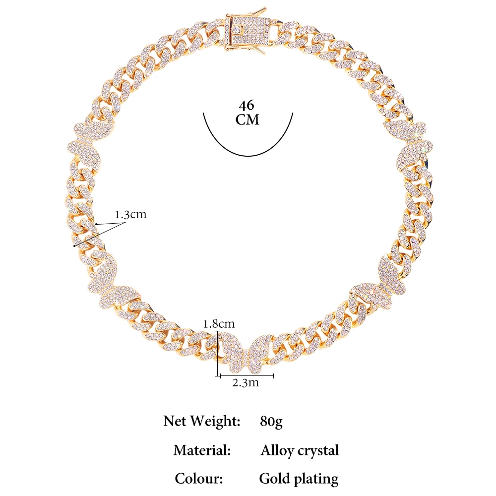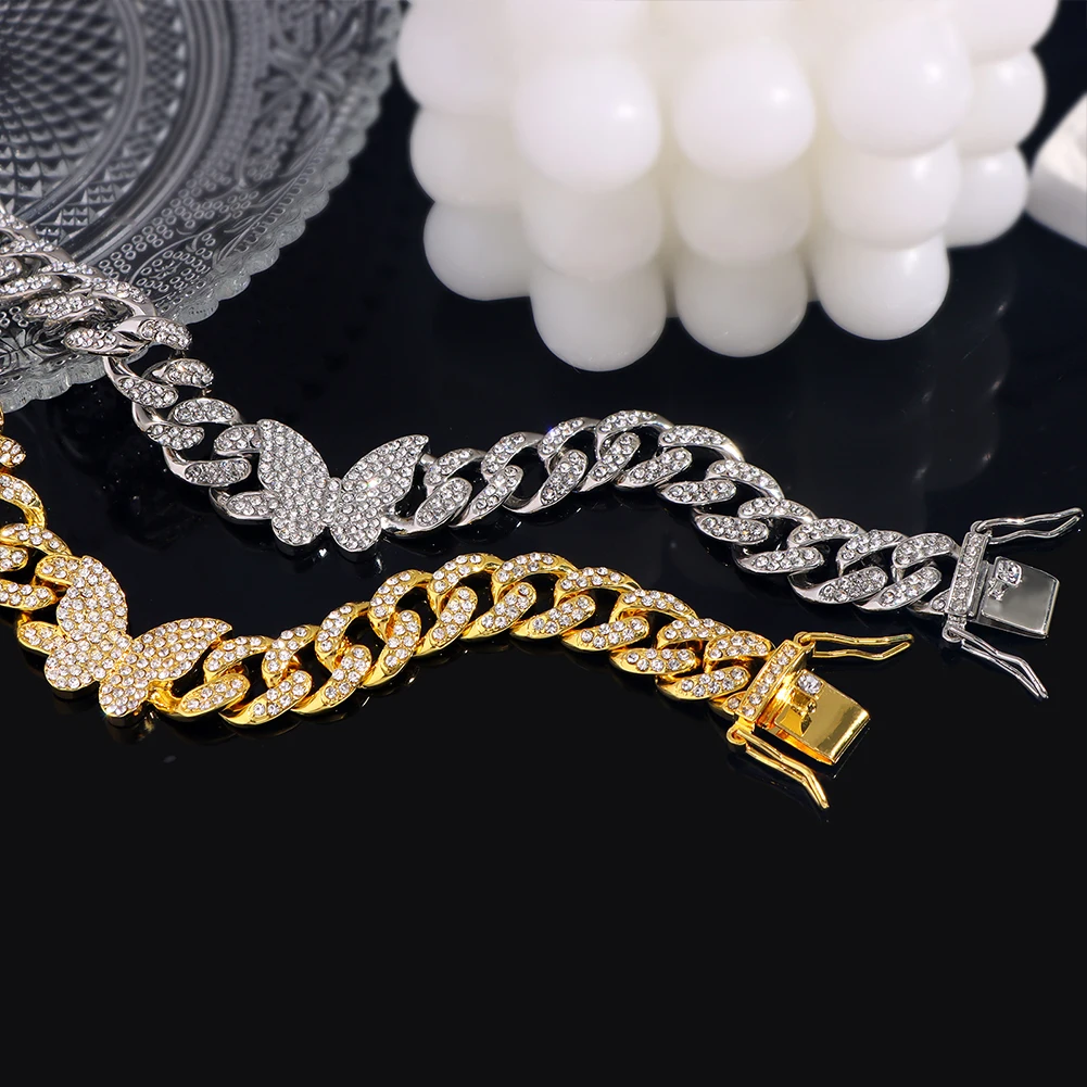 Iced Crystal Cuban Necklace braclet Women